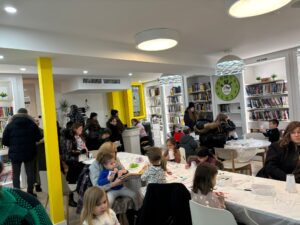 The JCCMP Kids Club has been busy producing masterful creations. In February, we held a “Make Your Own Snow Globe” class where children aged four and up could customize and make their own snow globes! Some kids colored in pre-drawn pictures and used them in their globe inserts, while others designed their own images. Small, punched-out white paper circles were the final touch, adding a fun winter wonderland effect.