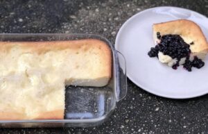 This is a family favorite. I make it after fast days to break the fast and also for Shavuos. There is no need to sit and make crepes, fill them, and fry them like traditional blintzes. According to my oldest daughter, “It’s just delicious.” And don’t forget the blueberry sauce—it really makes it “outrageous.”